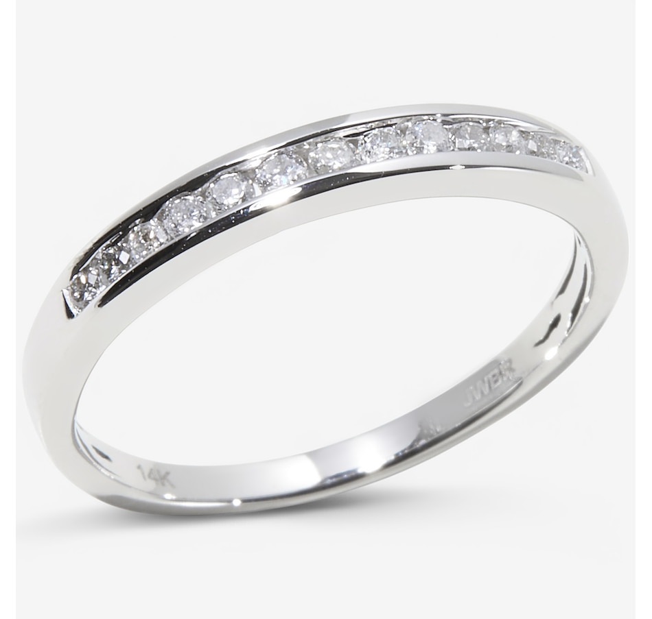 • (13) round, channel-set and faceted diamonds (0.15 av. ctw)