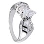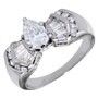 14K White Gold 0.84 Carat Pear Shaped Diamond Ring with Baguette and Round Cut Diamond Accents