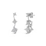 Complete her charming look with these adorable yet sophisticated diamond earrings. Designed in a modern style, the beautiful earrings features a trio of three square-shaped accents and composed of rich 14 karats white gold. Each of the earrings captivates the flickering princess cut diamonds, arranged in an invisible setting.