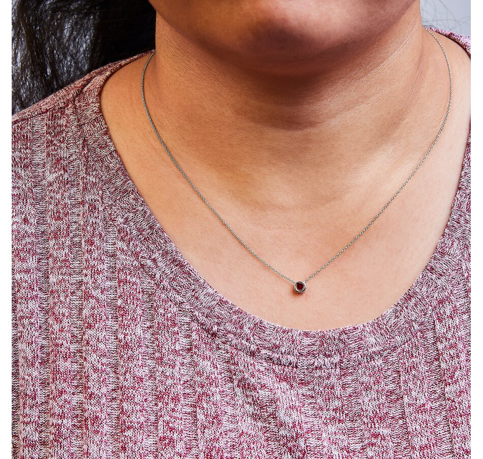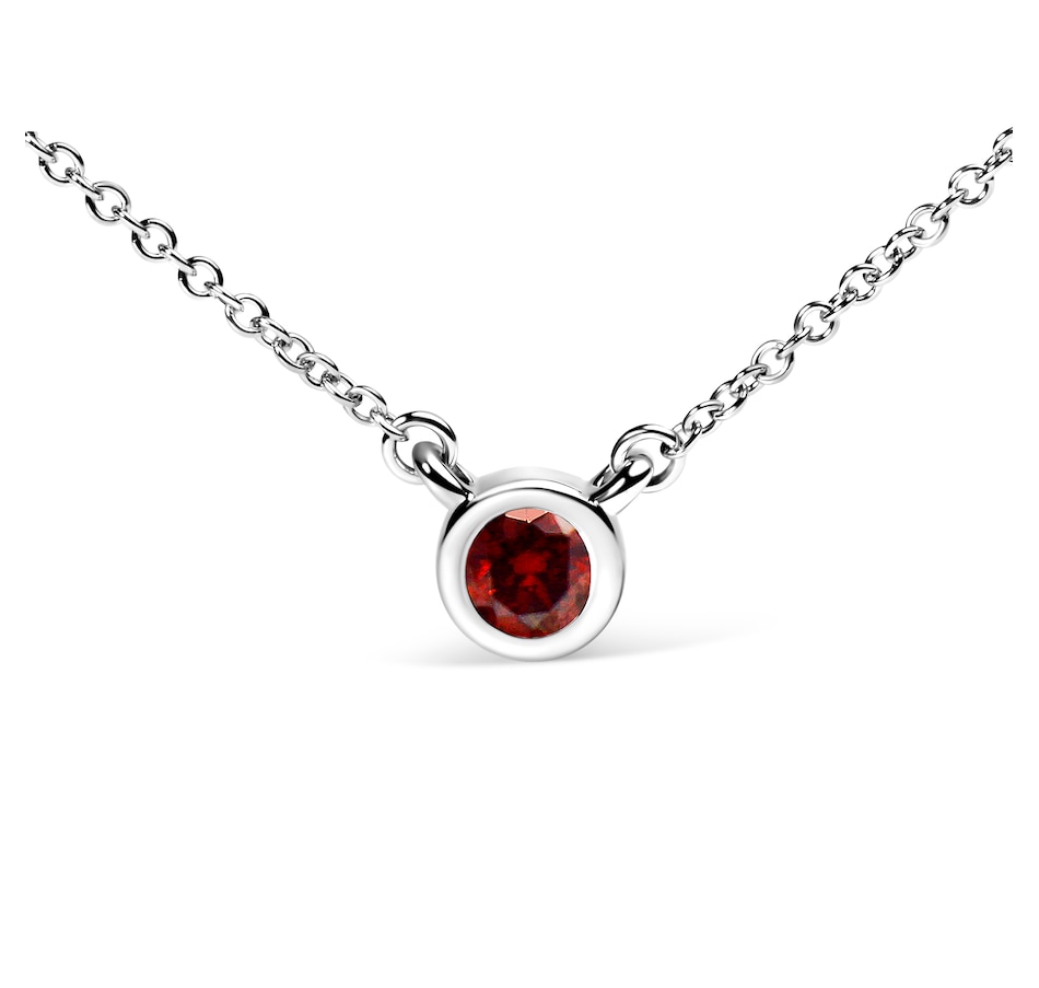 Immerse yourself in the radiant allure of sophistication with this exquisite pendant necklace, delicately crafted from rhodium-plated 14K white gold. Suspended gracefully on an 18-inch cable chain secured by a spring ring clasp, this necklace boasts a lustrous, bezel-set, red lab-grown diamond that captures the essence of refined elegance. Chosen for its remarkable VS1-VS2 clarity, this 1/2 carat gem dazzles with a fiery intensity. The minimalist design accentuates the diamond's vibrant hue, making it a striking centerpiece that beckons the eye. Perfect for those who cherish contemporary elegance, this pendant promises to adorn your neck with a touch of chic luxury and a burst of captivating color, enhancing both everyday wear and special occasions.