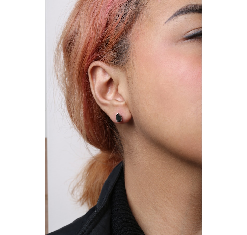 - Diamond 1 | Clarity: I2-I3, Color: Black, Count: 2, Cut: Excellent, Origin: Natural, Setting: Prong, Shape: Pear, Total Carat Weight: 2, Treatment: Color treated