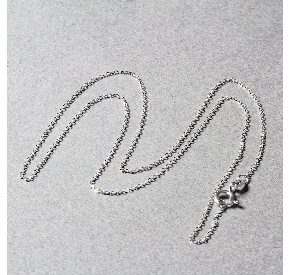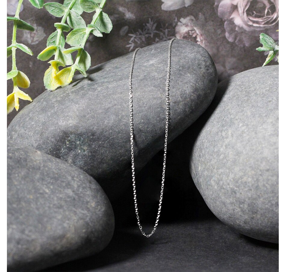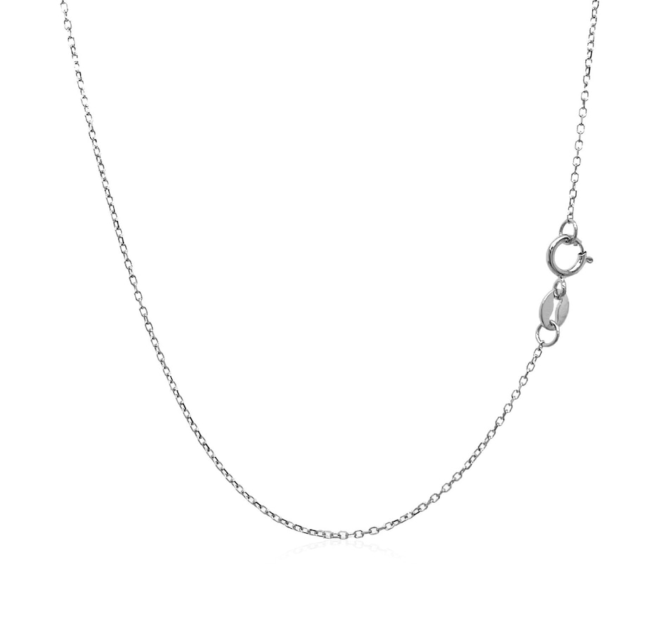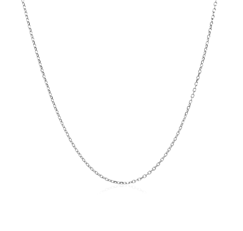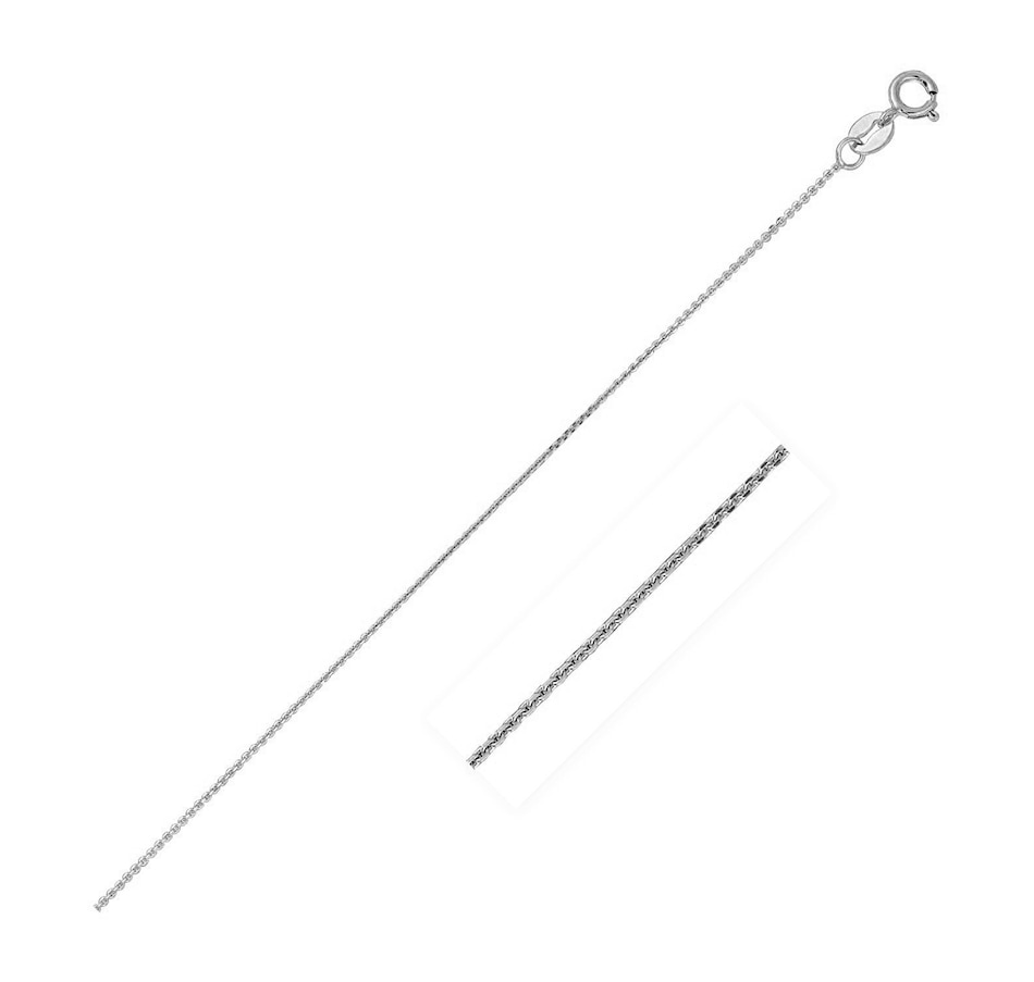 This diamond cut cable link chain comes in 14k white gold and has a width of 0.8 millimeters.