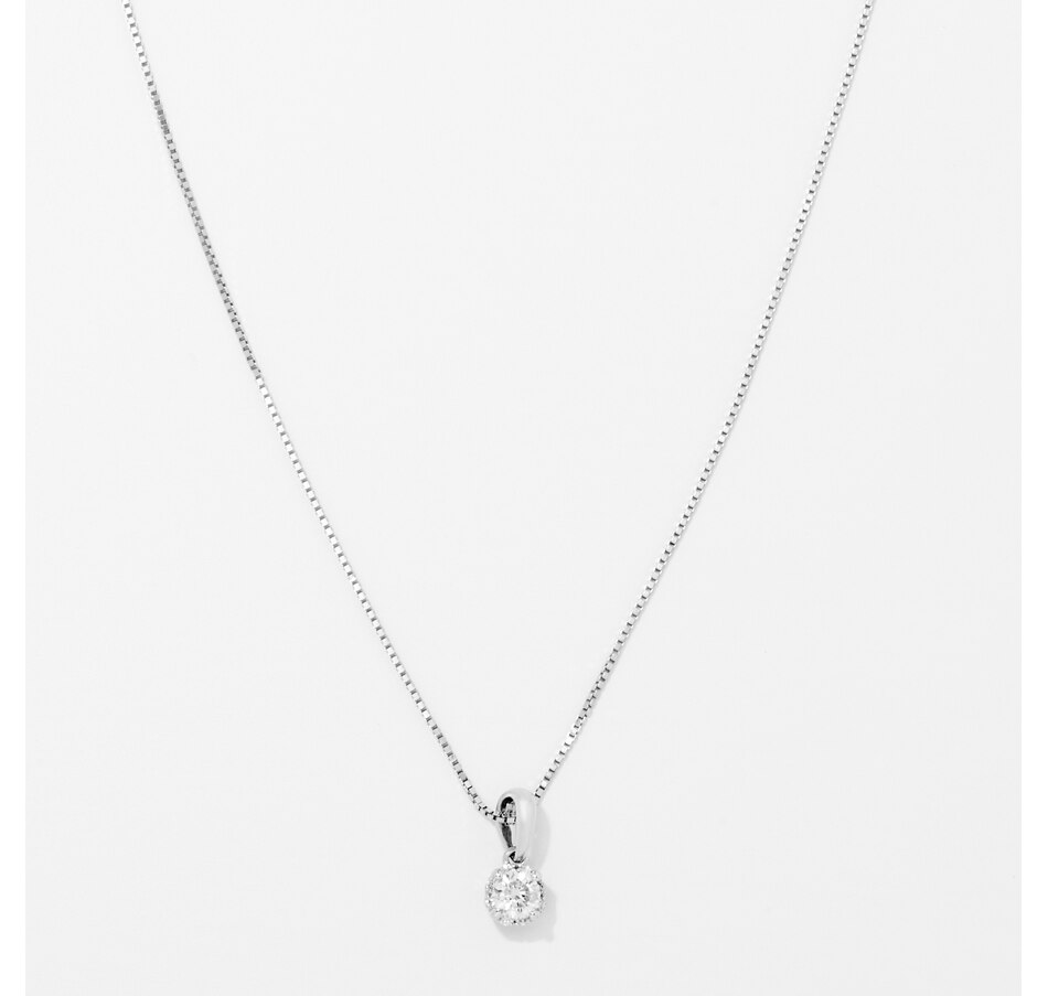 Centre your look with something exquisite and stunning wearing this 14K white gold diamond solitaire pendant and chain.
