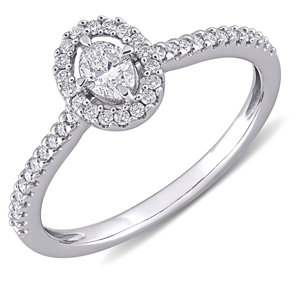 14K White Gold Oval Diamond Floating Halo Engagement Ring