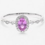 14K White Gold Pink Sapphire and Diamond Halo Ring