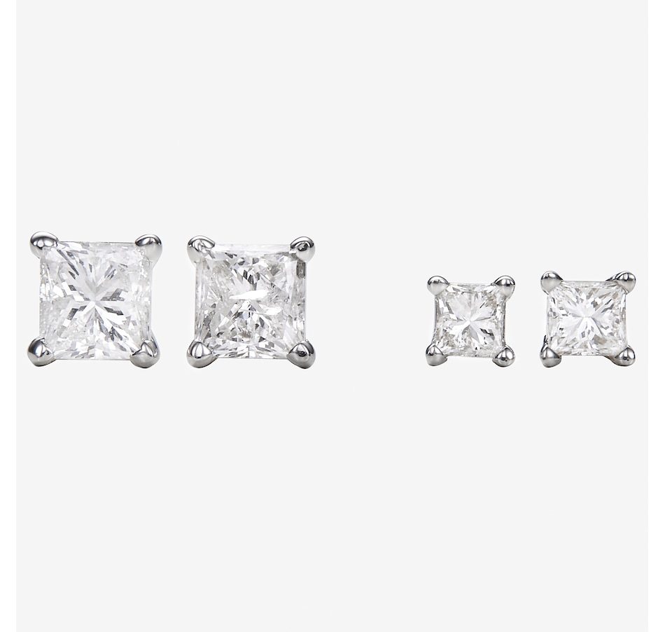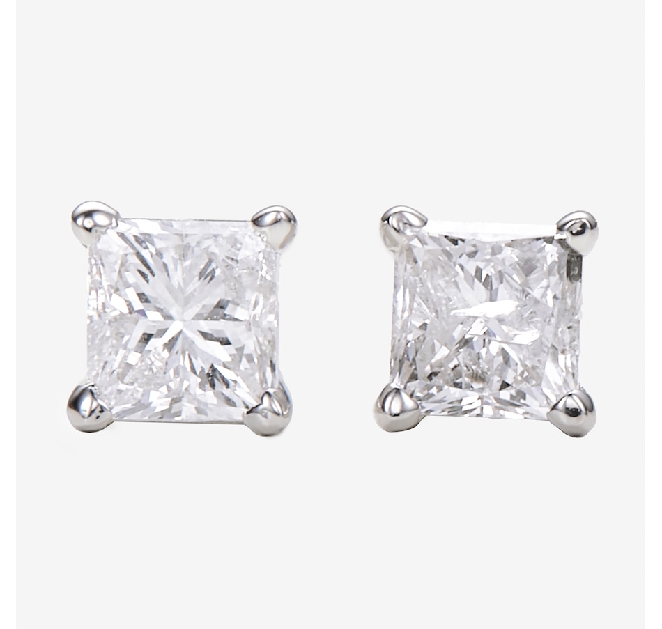 14K White Gold Princess Cut Diamond Solitaire Stud Earrings