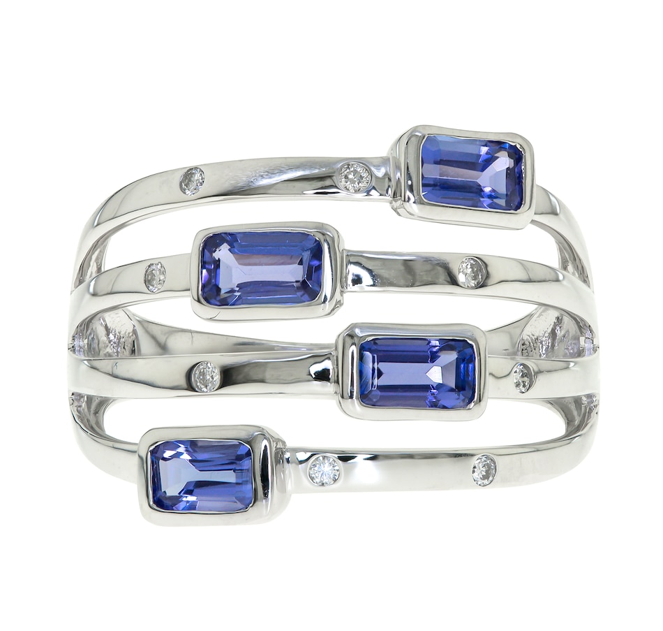 • (4) 3 mm x 5 mm emerald-shaped, bezel-set and faceted tanzanite (1.562 av. ctw)