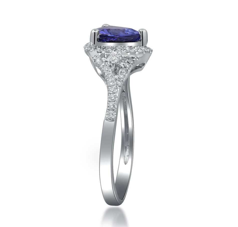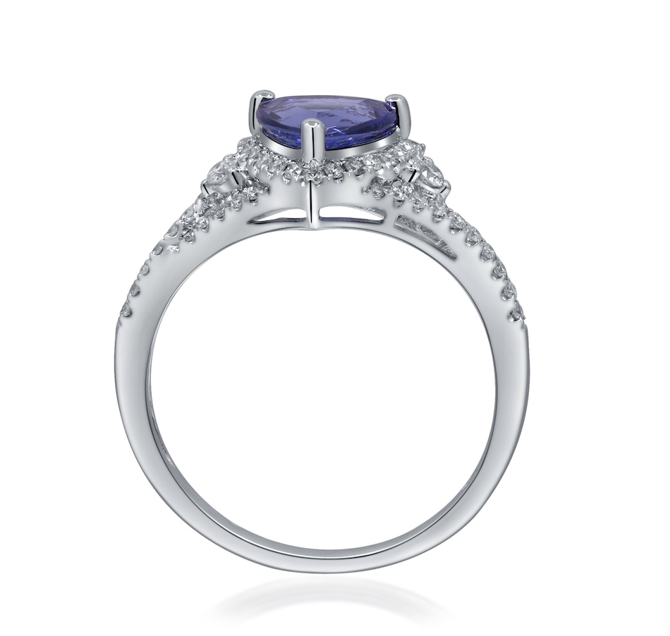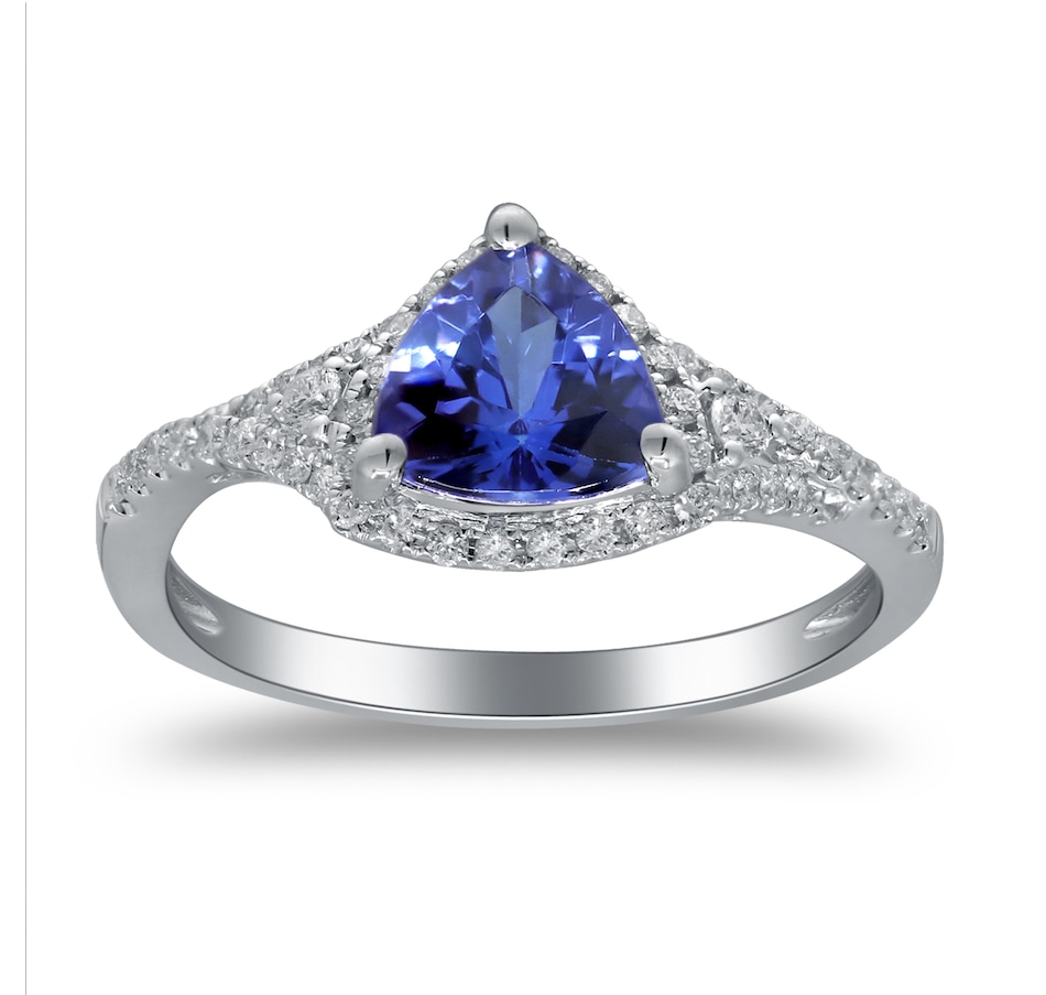 • (1) 7 mm trillion-cut, prong-set and faceted tanzanite (1.199 av. ctw)