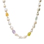 14K Yellow Citrine, Amethyst, and Baroque Pearl Strand Necklace - 18" Inches