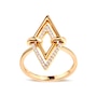 Immerse yourself in the sophisticated allure of this exquisite ring, masterfully crafted from radiant 14K yellow gold. Featuring a captivating double triangle design, this piece merges modern geometry with timeless elegance. The larger triangle gracefully encases a smaller counterpart, each adorned with natural white diamonds that sparkle with a clarity of SI1-SI2 and a color rating of G-H, totaling 1/5 carats. The slender band accentuates the geometric artistry, allowing the polished gold finish to beautifully reflect the light and amplify the diamonds' brilliance. This ring is not just a piece of jewelry but a statement of style, making it an ideal treasure for those who appreciate contemporary design paired with classic luxury.