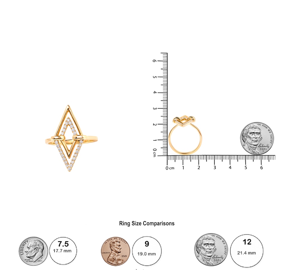14K Yellow Gold 1/5 Cttw Diamond Double Triangle Ring (G-H Color, SI1-SI2 Clarity) - Size 7