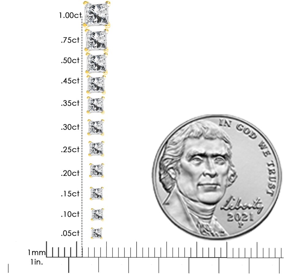 Two gorgeous near-colorless white princess cut diamonds sit in a prong setting on these sparkling stud earrings. Crafted in lustrous 14kt yellow gold, these diamond stud earrings feature a high polish finish. These stunning gold earrings feature square princess cut diamonds, and the four-prong settings are sure to keep your precious diamonds in place. These stud style earrings are subtle enough for casual affairs but sparkle in formal settings as well. Coordinate these earrings with your favorite diamond necklace or other diamond jewelry to create a complete elegant ensemble.