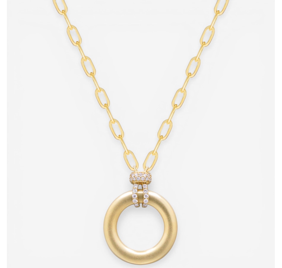 This elegant circle pendant glows with the soft brilliance of faceted diamonds set in warm yellow gold. The satin and high‑polish finishes create a beautiful contrast, adding depth and gentle radiance to the design. Refined and timeless, it’s a graceful piece that brings subtle sparkle and sophisticated charm to any jewellery collection.
