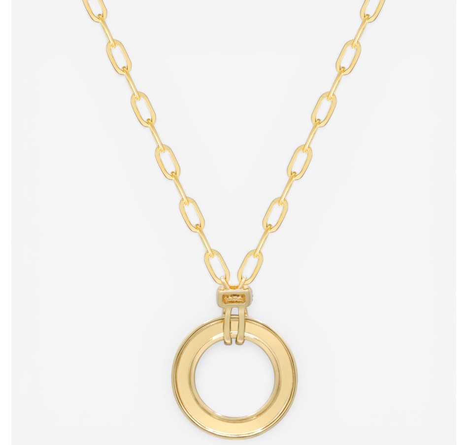 14K Yellow Gold Circle Diamond Pendant Necklace
