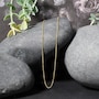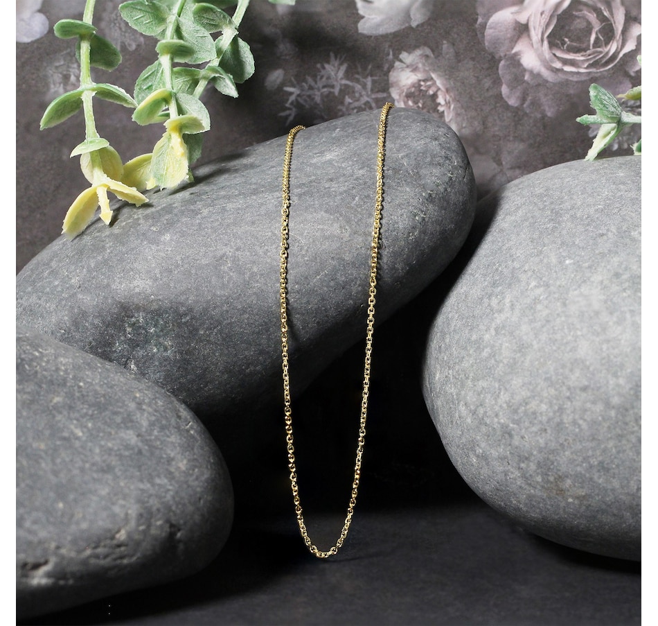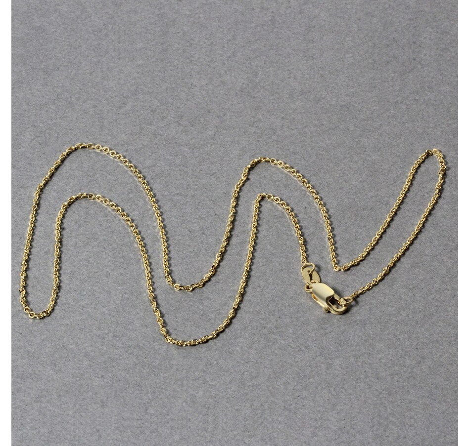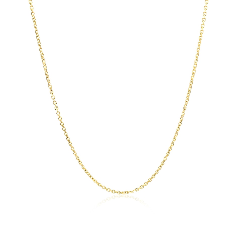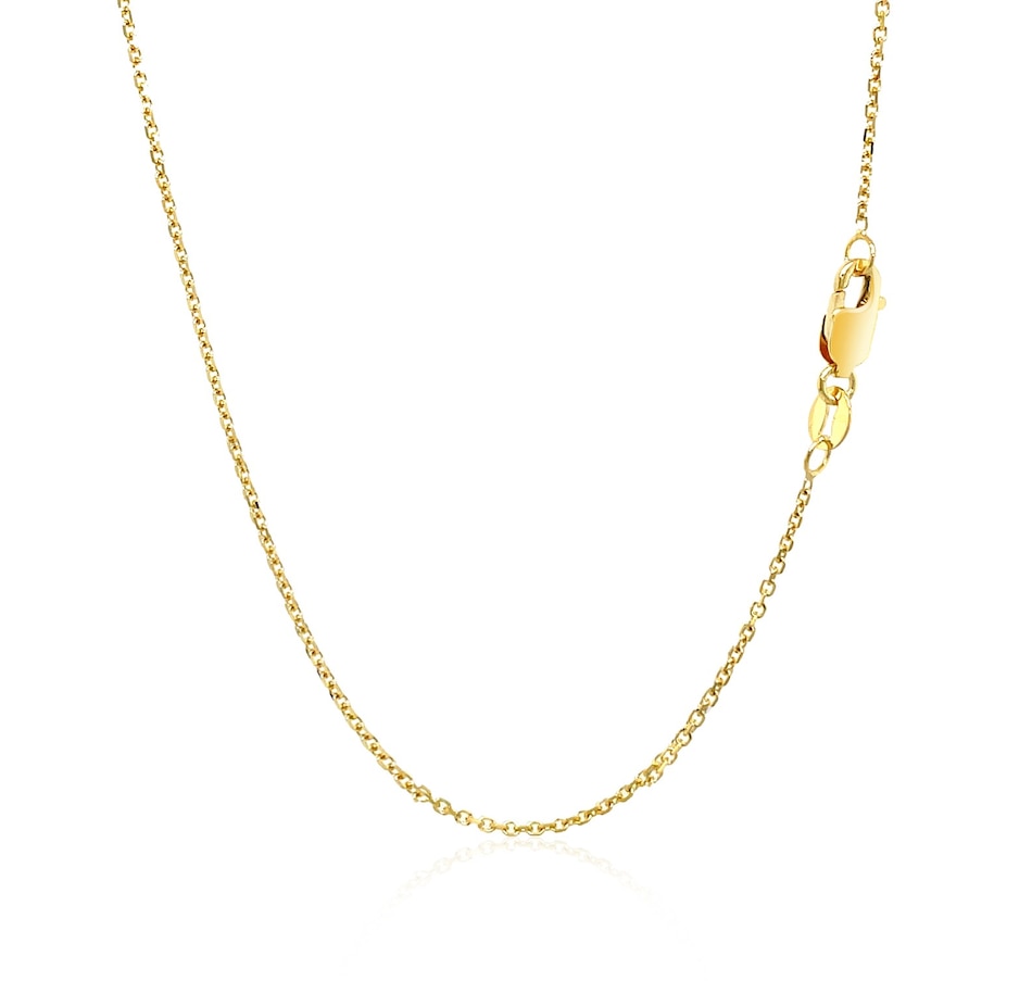 This diamond cut cable link chain comes in 14k yellow gold and has a width of 1.1 millimeters.