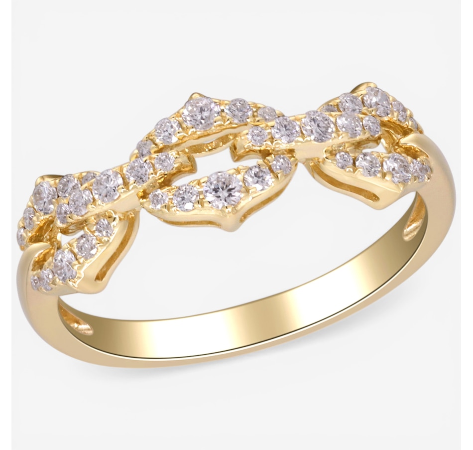 This elegant link‑design ring sparkles with the refined brilliance of faceted diamonds set across its polished yellow gold silhouette. The design creates graceful movement, while each diamond catches the light. Timeless and beautifully detailed, it’s a sophisticated piece that brings luminous charm to any jewellery collection.