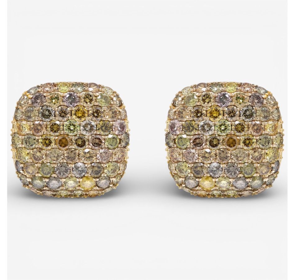 • (128) round, pave set and faceted yellow and champagne diamonds (3.68 av.ctw)