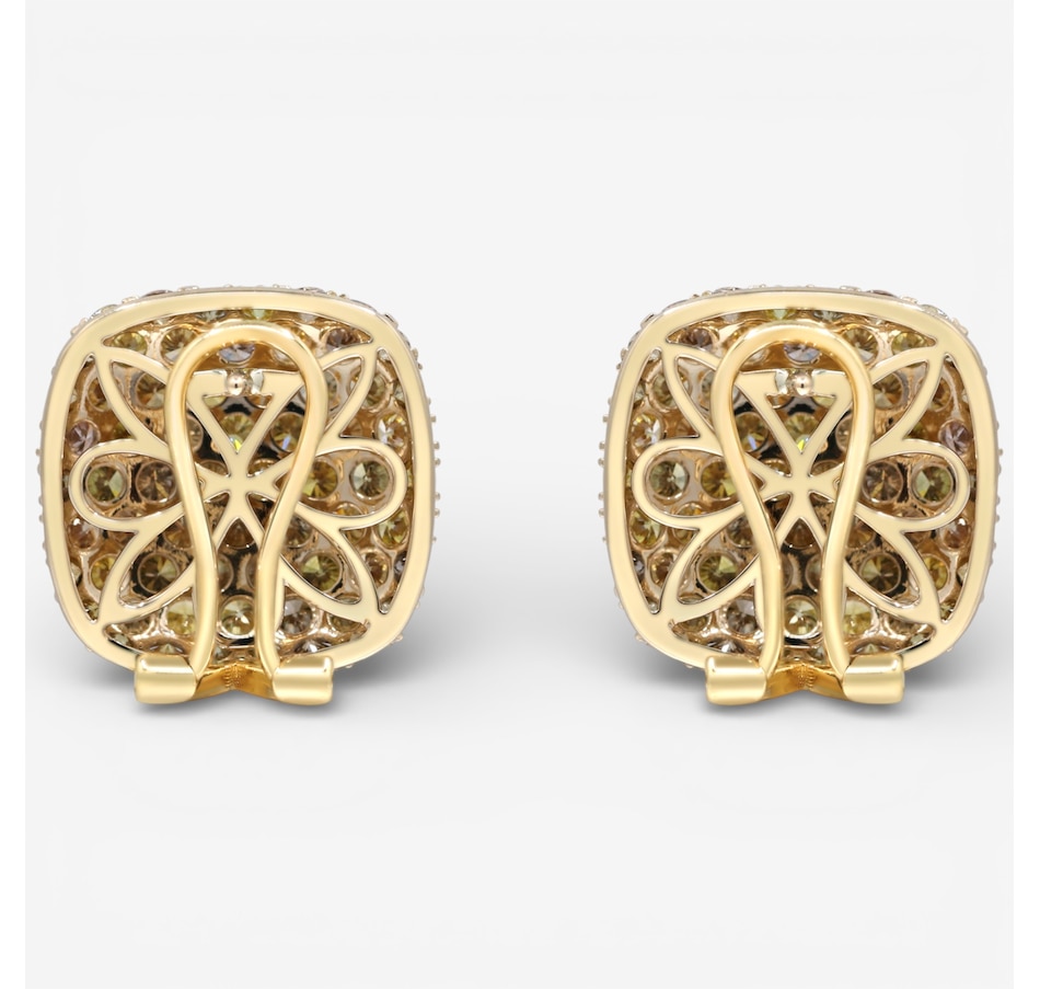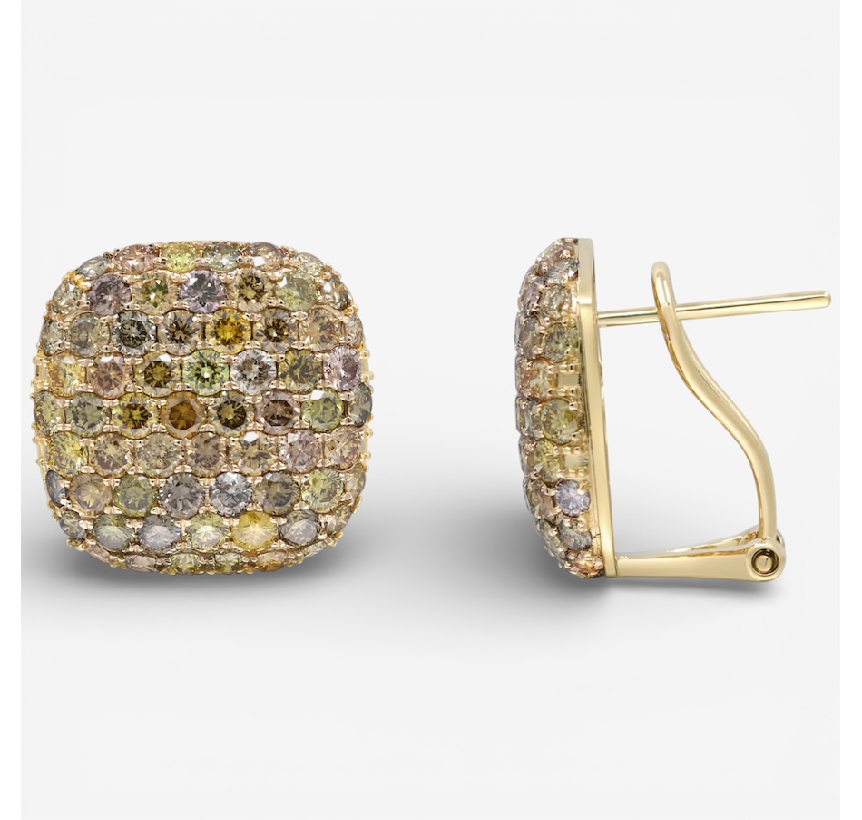 Add warm, refined brilliance to your jewellery collection with these 14K yellow gold pave desert diamond omega earrings, featuring a dazzling arrangement of yellow and champagne diamonds. The pave‑set diamonds create rich sparkle and visual depth, while the gallery back adds a polished finishing detail. Completed with secure omega backings for comfortable wear, these earrings are made in Thailand and include an appraisal for added confidence.