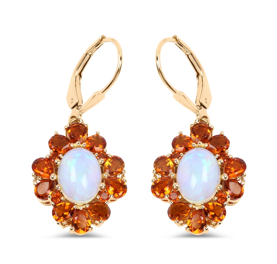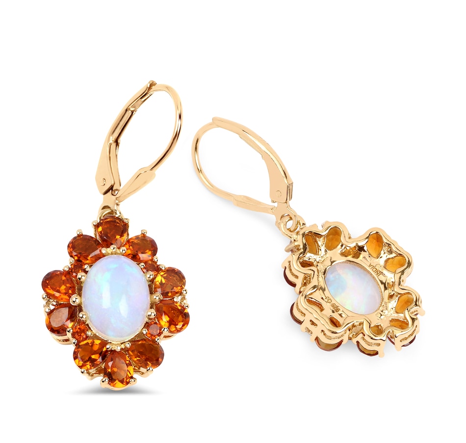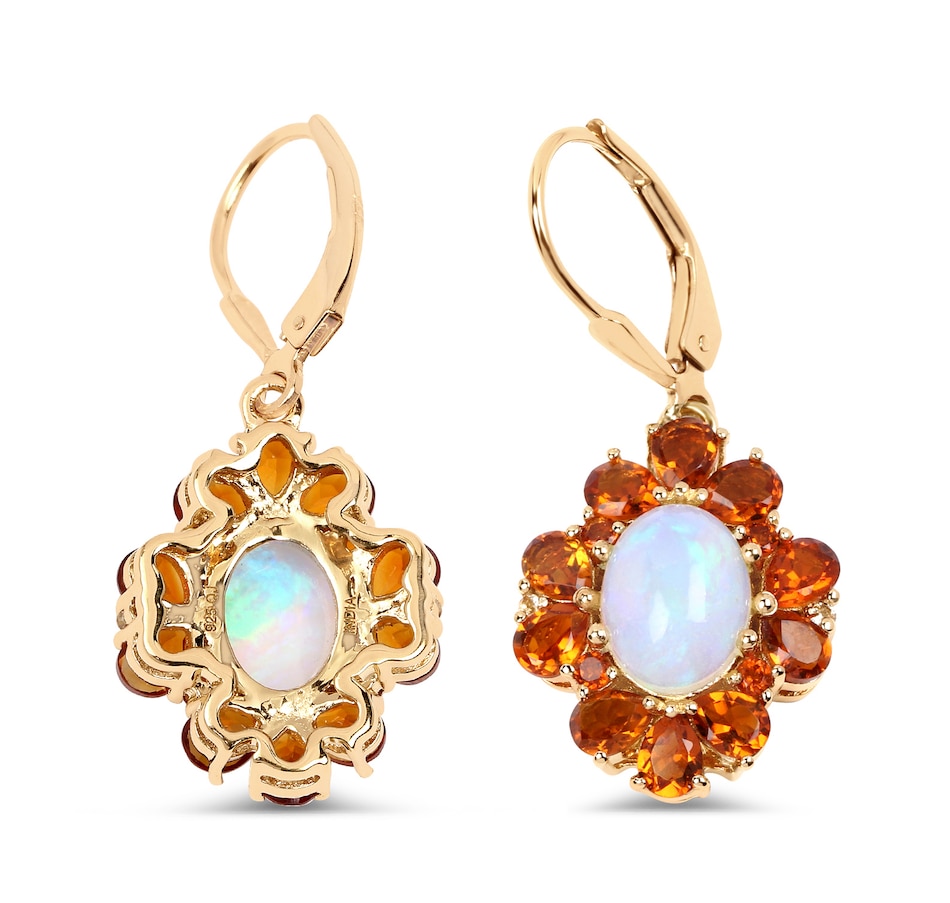 14K Yellow Gold Plate 5.42 Carat Genuine Ethiopian Opal Citrine & White Topaz .925 Silver Earring Citrine:Pear/4x3mm 20/3.20 ct.w Citrine:Round/1.80mm 8/0.18 ct.w Ethiopian Opal:Oval/9x7mm 2/2.00 ct.w Topaz White:Round/1.20mm 4/0.04 ct.w