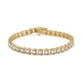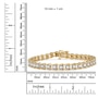 Gold top and bottom links frame single, round-cut diamonds to create this magnificent wave-like design on this 2 carat bracelet. Round-cut diamonds in a classic miracle setting are embellished in the finest 14k yellow gold plated .925 sterling silver. This piece will sit delicately on your wrist and shine bright with any outfit you pair it with. It is 7.25 inches long and comes with a box with clasp for a secure fit. You will love the romantic feel of this glamorous bracelet.