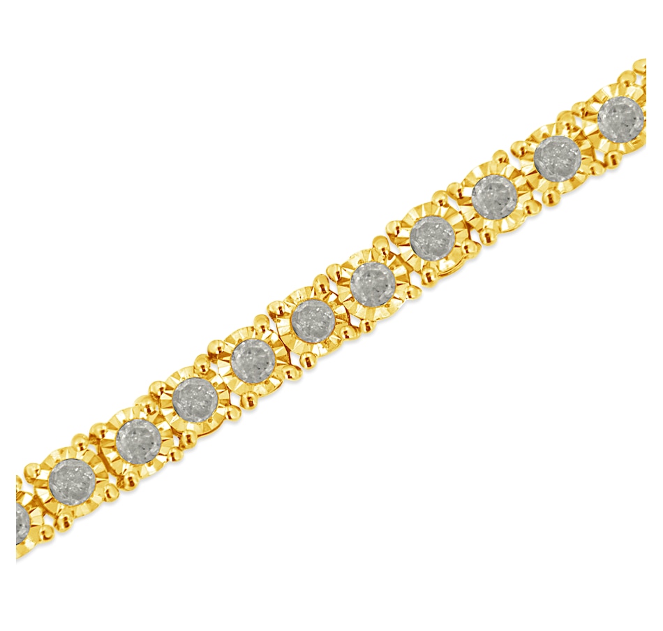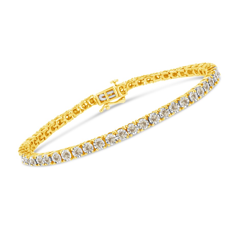 14K Yellow Gold Plated .925 Sterling Silver 3.0 Cttw Miracle-Set Diamond Tennis Bracelet (L-M Color, I2-I3 Clarity) - 7.25"
