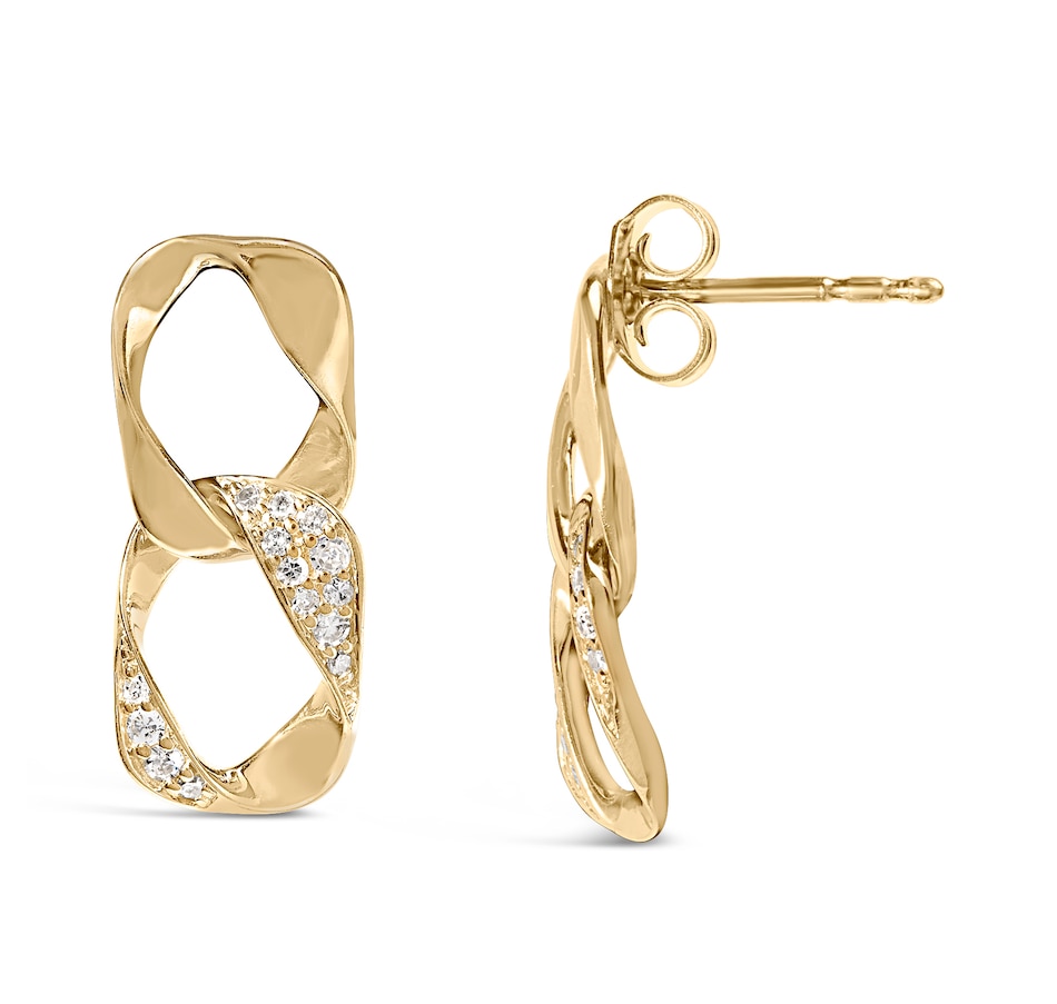 Immerse yourself in the luxurious allure of these exquisitely crafted drop earrings, each fashioned from radiant 14K yellow gold-plated .925 sterling silver. Envision the delicate dance of light as it captures the splendor of the natural diamonds, totaling 1/5 carats, that gracefully adorn the linked open shapes of the earrings. With a clarity of I1-I2 and a color range of H-I, these gems offer a twinkling brilliance that cascades down to a perfect 7/10th of an inch in length. The earrings stay securely in place with a comfortable push back mechanism, ensuring elegance that flows effortlessly with every movement. Designed to captivate and charm, these earrings not only embody a timeless beauty but also an expression of exquisite craftsmanship and luxury.