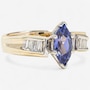 14K Yellow and White Gold 1.12 Carat Tanzanite and Baguette Diamond Ring