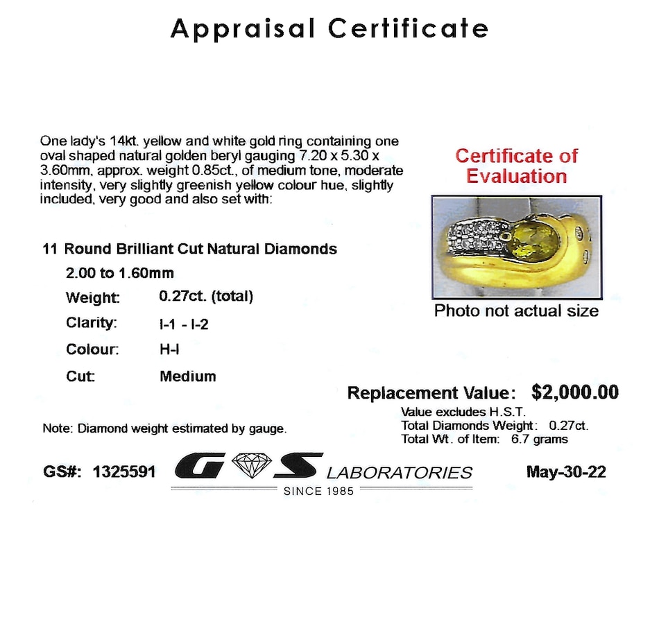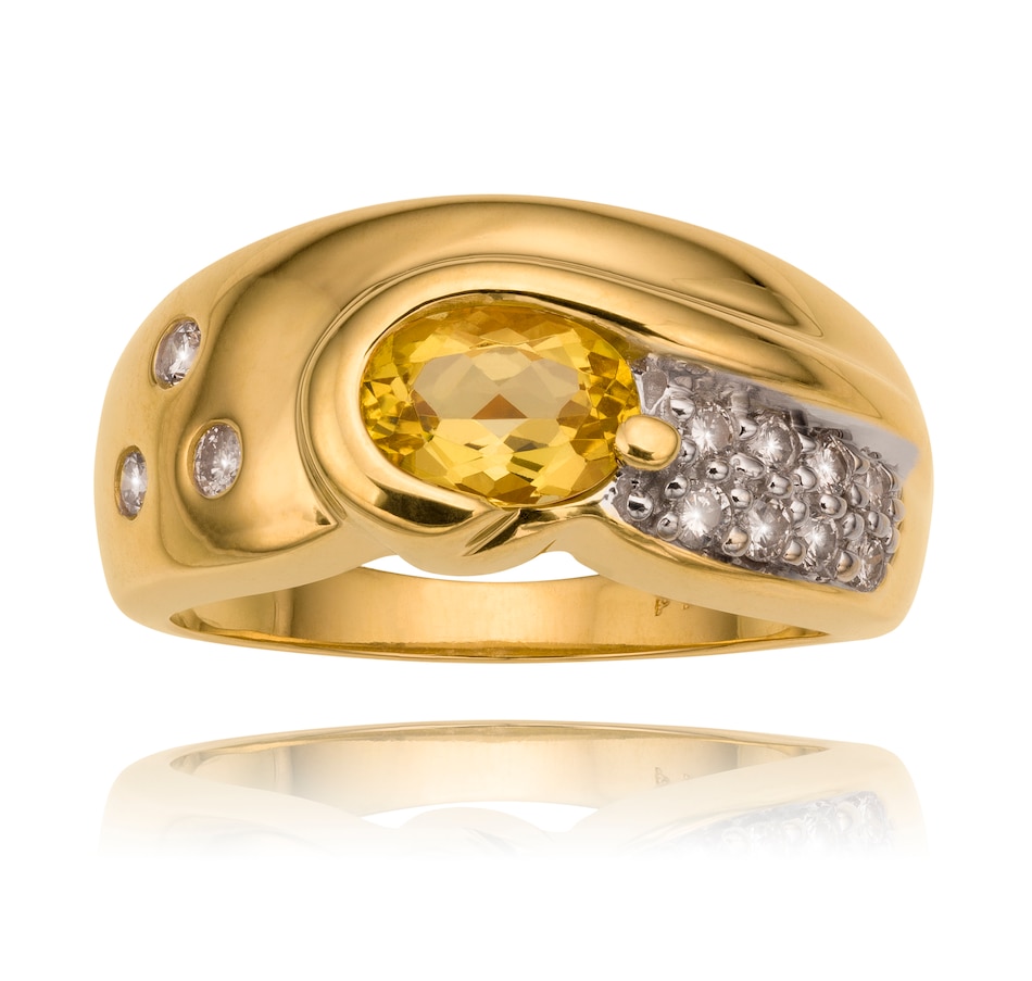 14K Yellow and White Gold Golden Beryl and Diamond Ring