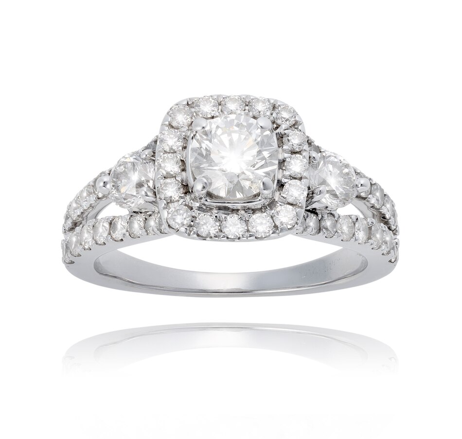 14KT White Gold 1.59 Carat Total Weight Diamond Halo Ring, .59 Carat Centerstone