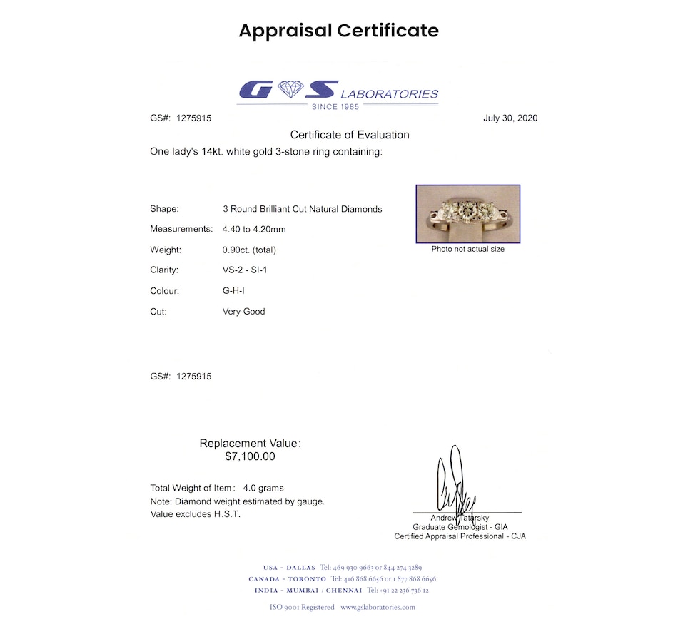 Specs: (3) round brilliant cut diamonds (.90ctw)