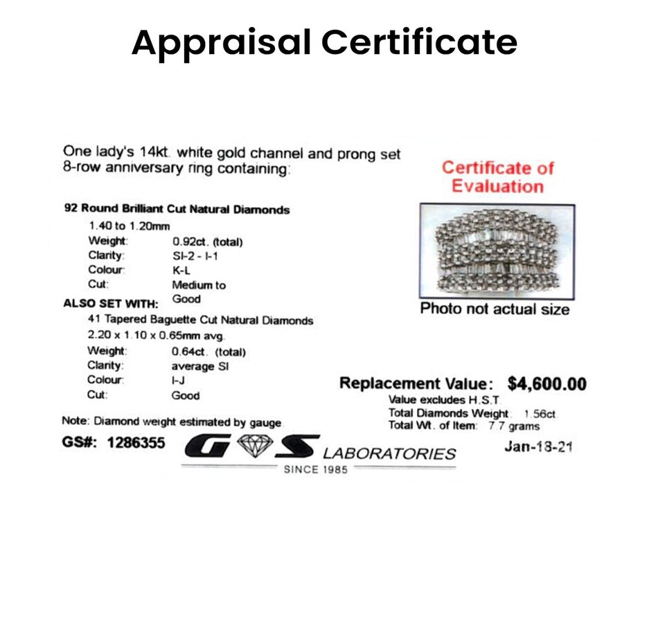 14KT White Gold Channel and Prong-Set 8-Row Anniversary Ring