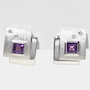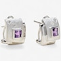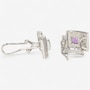 14KT White Gold Square Shaped Amethyst and Diamond French Back Earrings