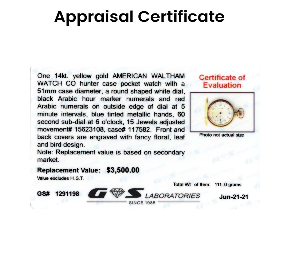 • Appraised Value: $4,200.00 (Appraisal certificate included). Please Note: The replacement value is based upon real secondary market values and not comparable new watches.