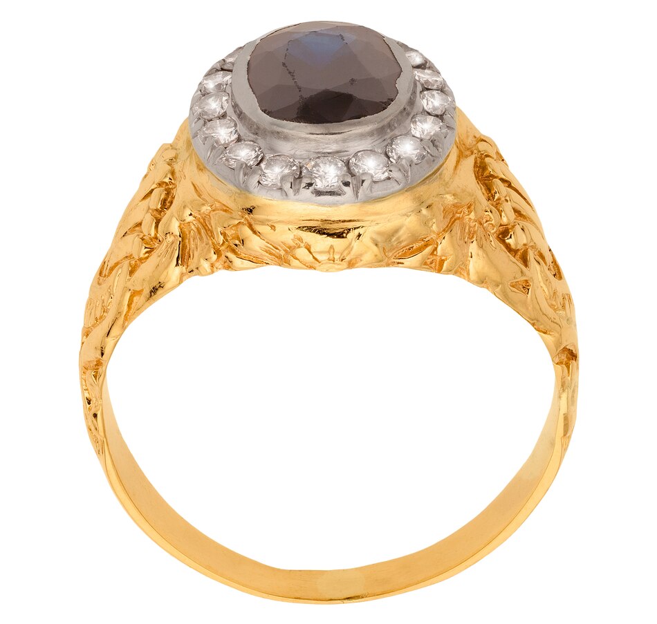 14KT Yellow Gold and Platinum Sapphire and Diamond Halo Designed Ring
