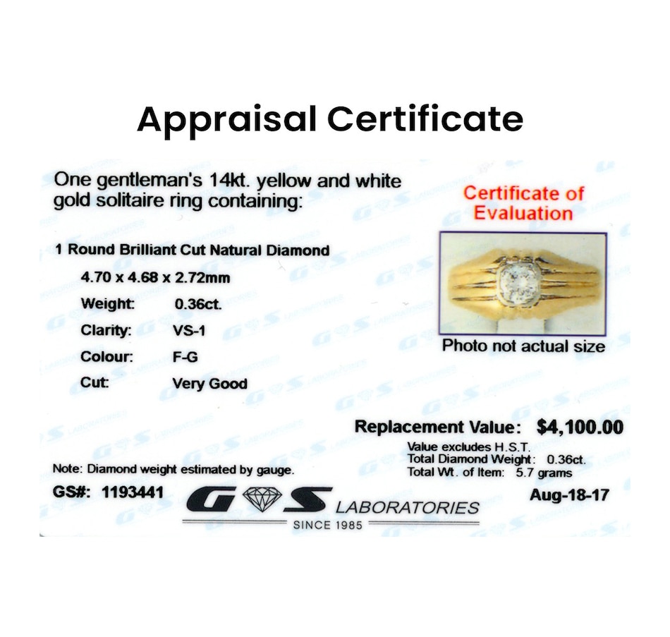• Specs: (1) round brilliant cut diamond (.36ct)