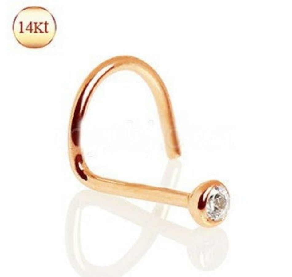 ‚¬¢‚ 14Kt Rose Gold Nose Screw with Press Fit CZ‚Press Fit / Bezel Set 2mm Clear Cubic Zirconia‚14Kt. Gold Stamp‚Height : 7mm‚Thickness : 20GA / 0.8mm‚CZ Size : 2mm‚Jewelry Weight : 0.17g‚Material : 14Kt. Rose Gold, Cubic Zirconia