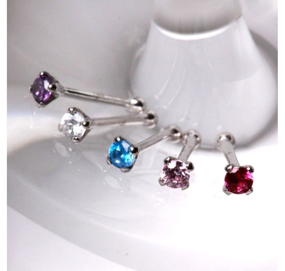 14Kt White Gold Stud Nose Ring with a Prong Setting Cubic Zirconia.High Quality Prong Set Cubic ZirconiaThickness : 20GA / 1 mmCZ Size : 2 mm
