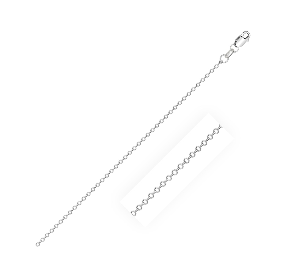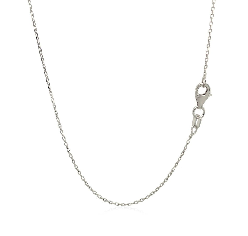 This diamond cut cable link chain comes in 14k white gold and has a width of 0.8 millimeters.