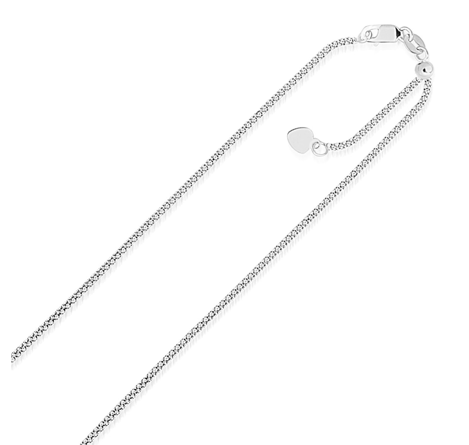 Crafted in 14k white gold&44; this adjustable popcorn chain measures a width of 1.3 millimeters and features a heart dangle accent. The chain is adjustable up to 22 inches and is fastened securely with a lobster clasp.