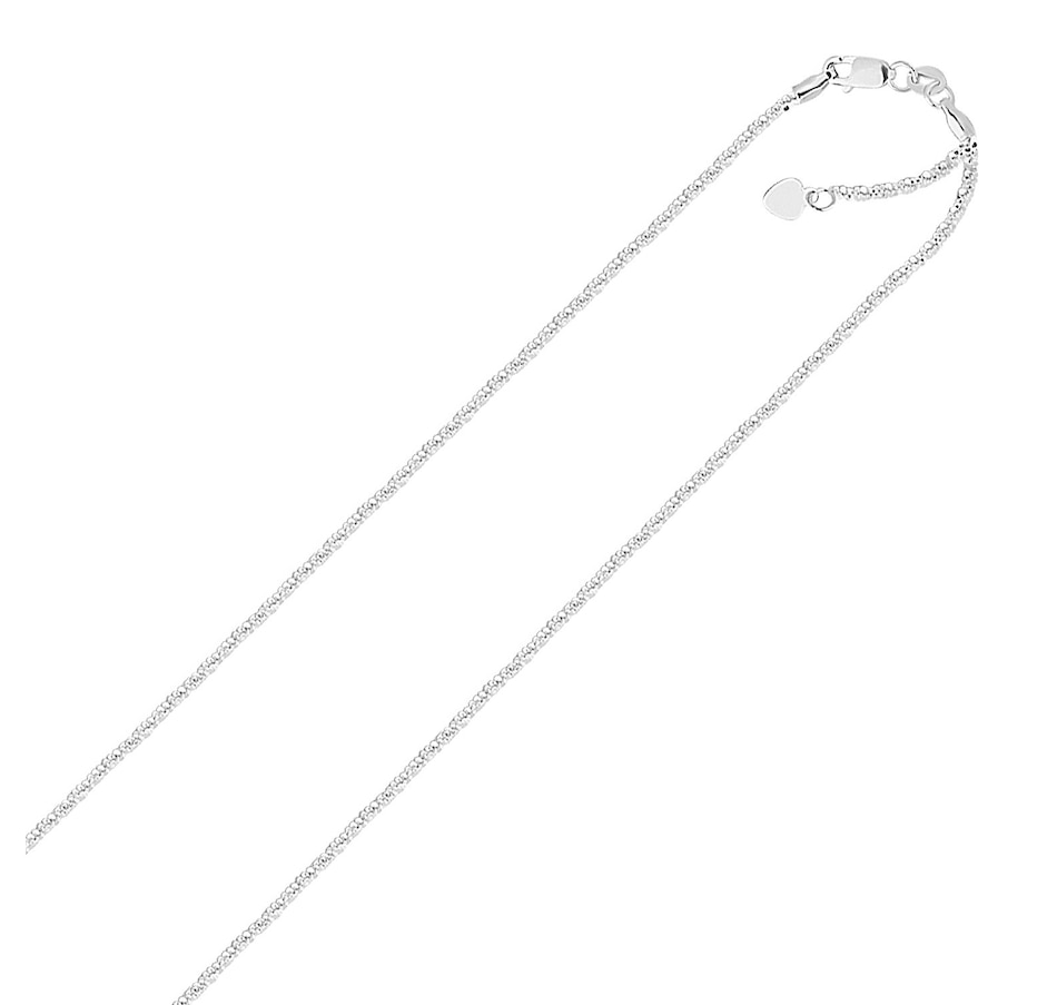 Crafted in 14k white gold&44; this adjustable sparkle chain measures a width of 1.5 millimeters and features a heart dangle accent. The chain is adjustable up to 22 inches and is fastened securely with a lobster clasp.