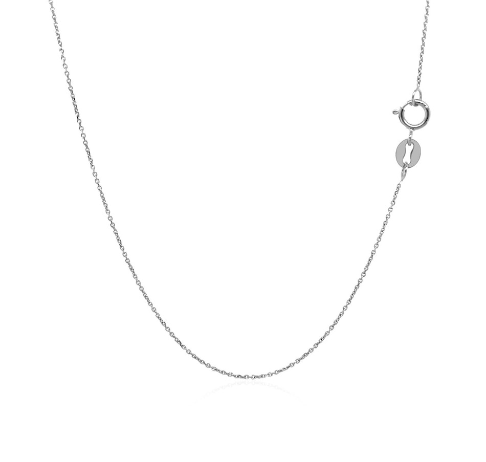 This cable link chain comes in 14k white gold and has a width of 0.5 millimeters.