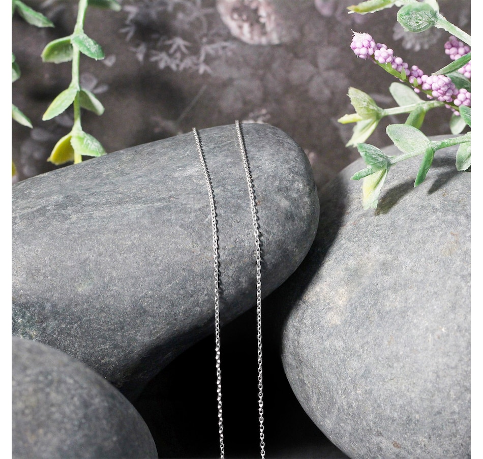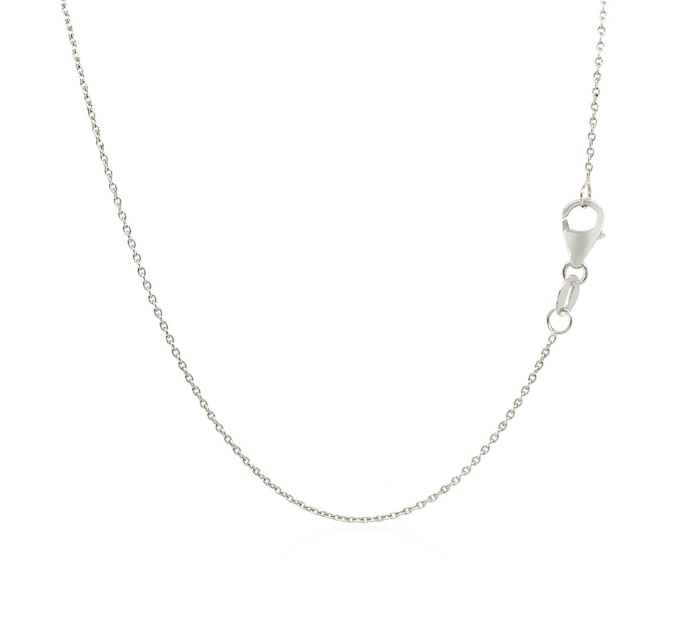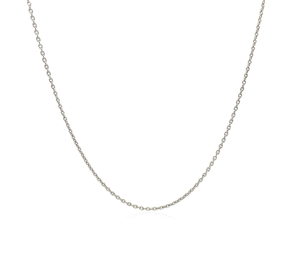 This round cable link chain comes in 14k white gold and has a width of 0.7 millimeters.