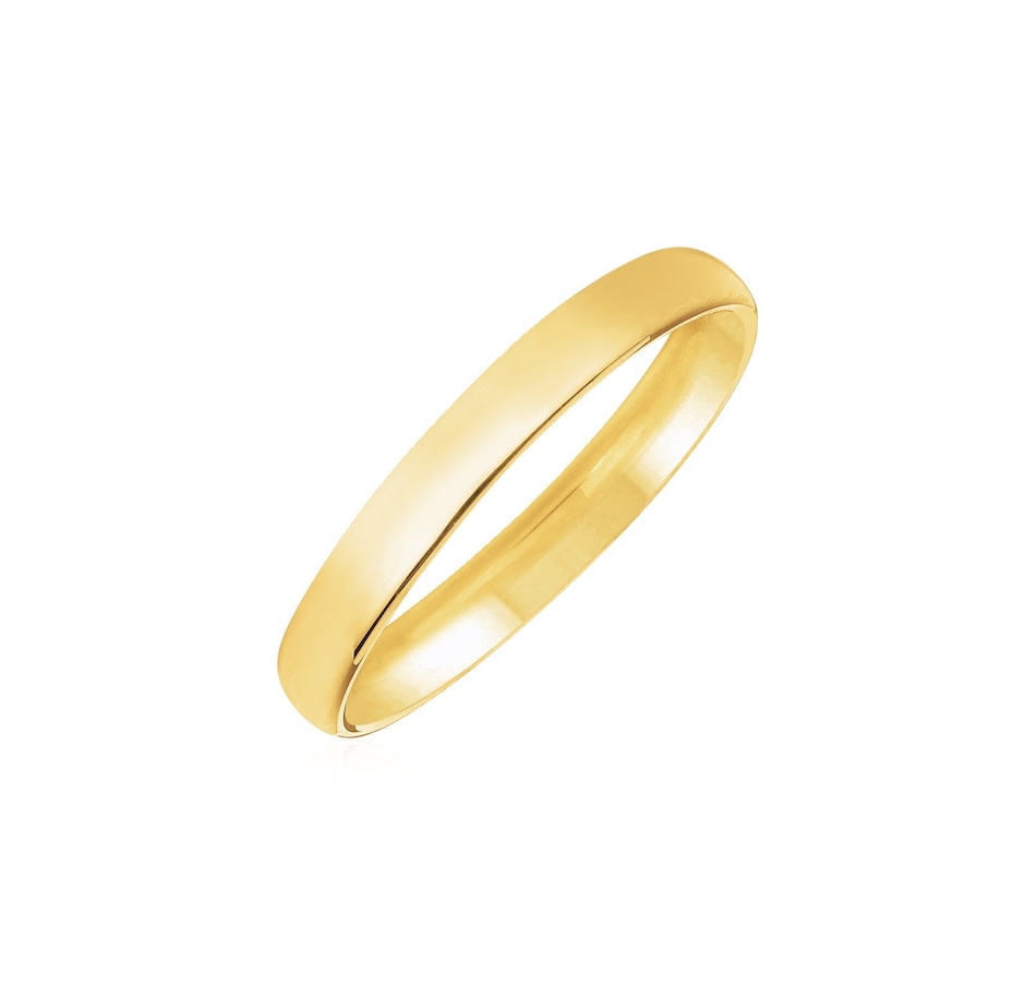 Traditional symbolism meets modern comfort and practicality in this elegant 14k yellow gold wedding band. Band is 3mm wide and is available in ring sizes 4 to 11.