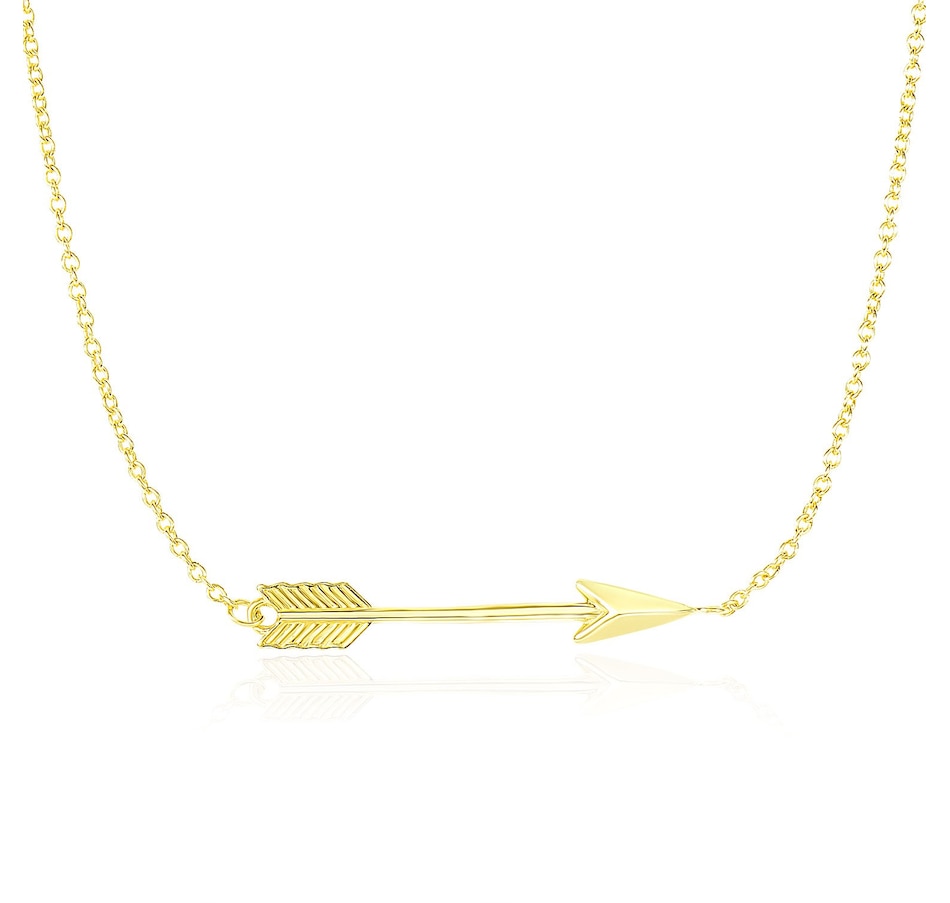 A beautifully crafted arrow in a horizontal orientation showcases the charming style of this chain necklace. Made of 14k yellow gold, this measures 18 inches and secured with a lobster clasp.