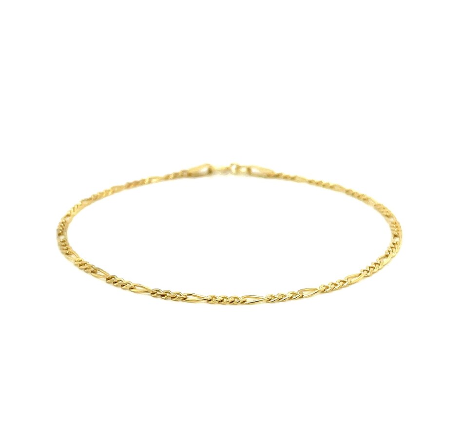 14k yellow gold, this Figaro anklet had a width of 1.9 millimeters and secured with a spring ring clasp.