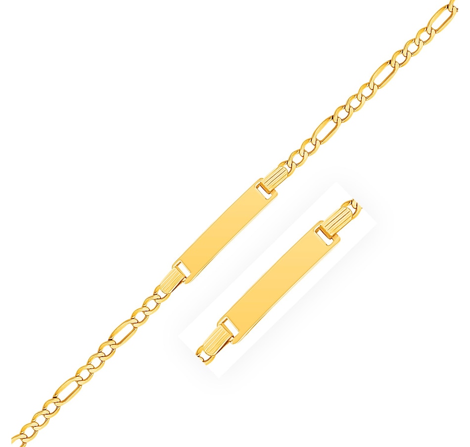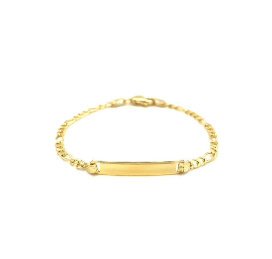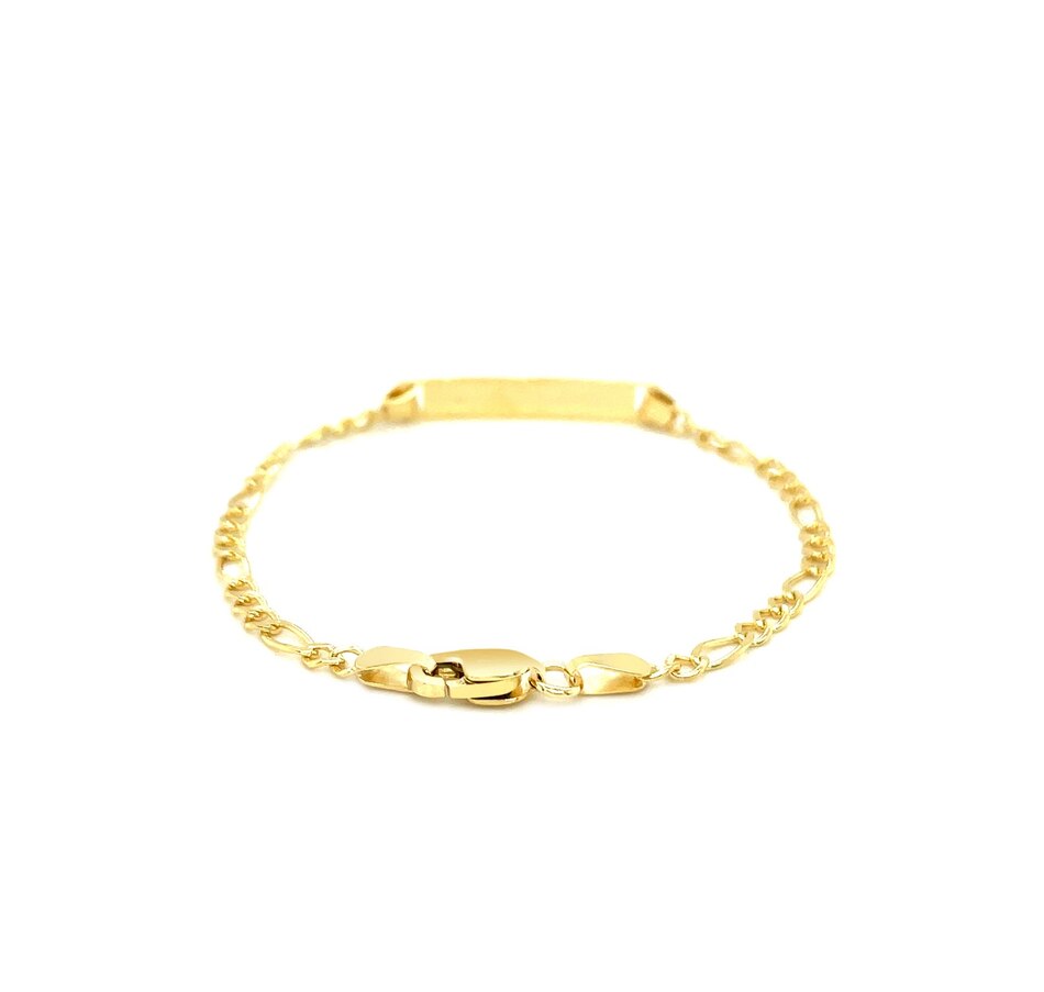 A classic beauty made of 14k yellow gold. This children's ID bracelet showcases stunning Figaro style chain and comes in size 6 inches.