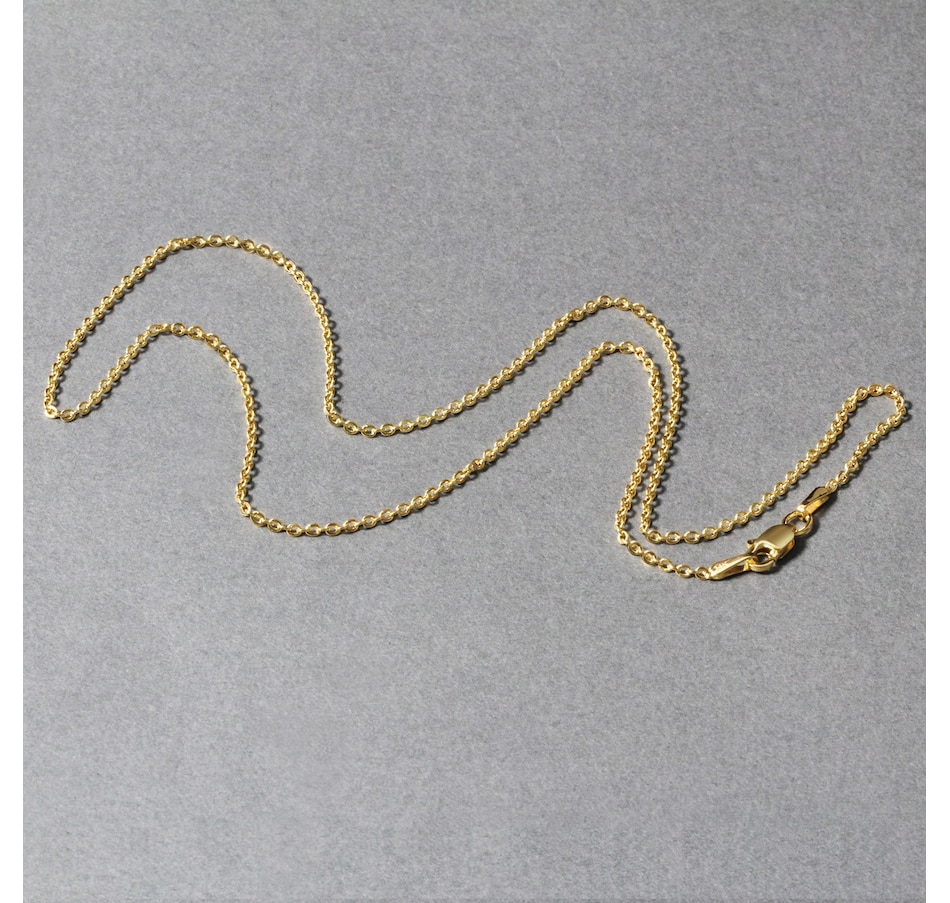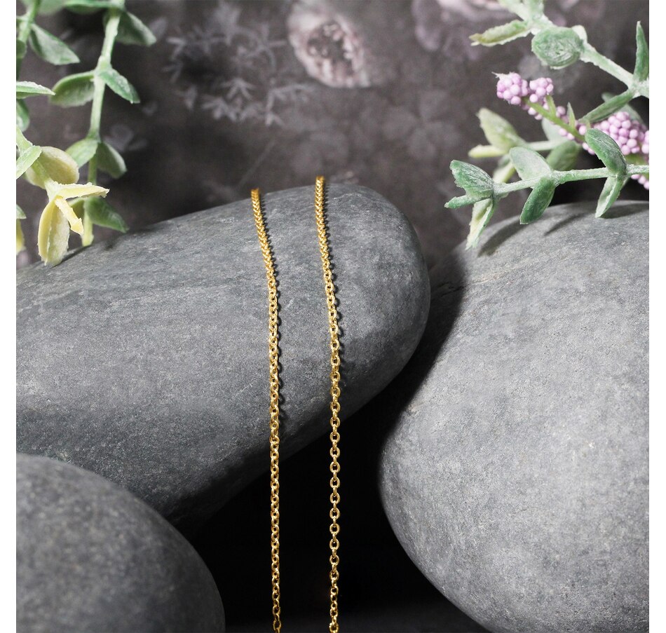 This forsantina lite cable link chain comes in 14k yellow gold and has a width of 1.5 millimeters.