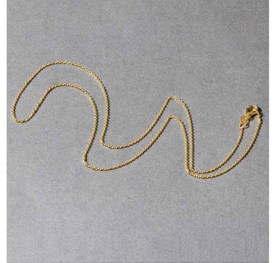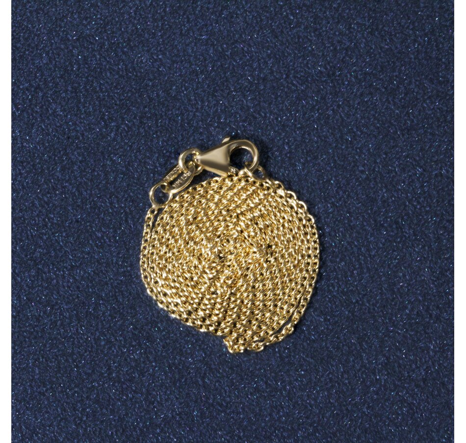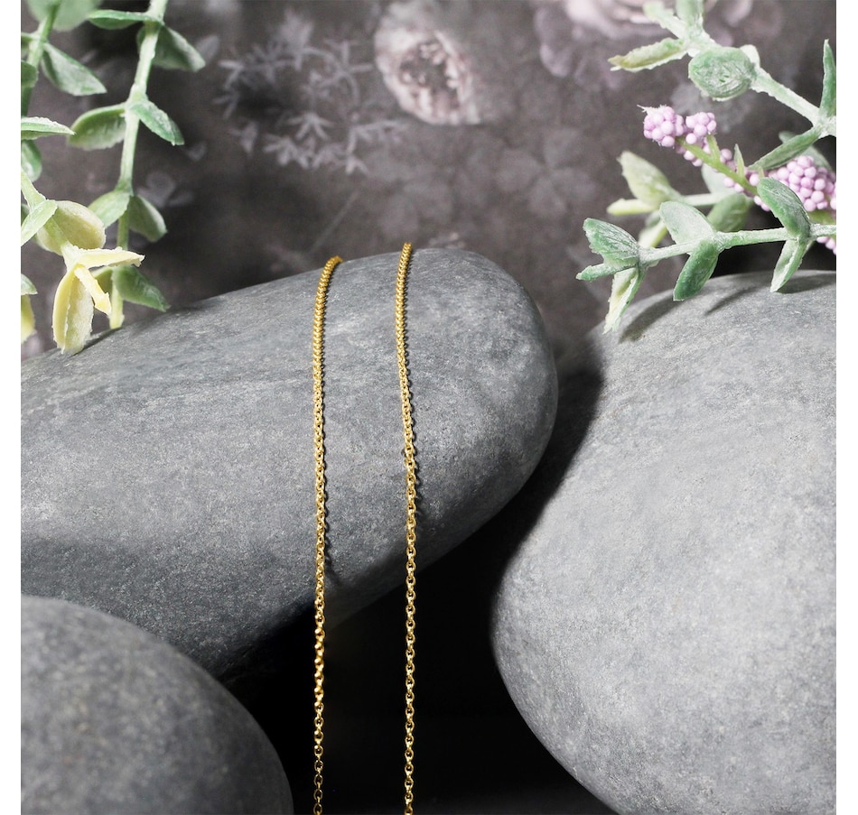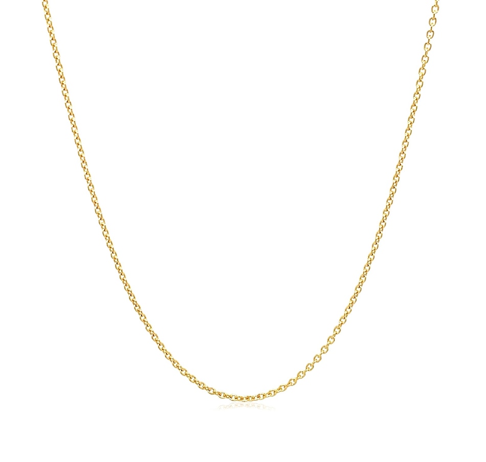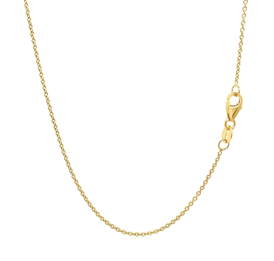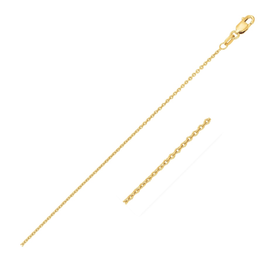 This round cable link chain comes in 14k yellow gold and has a width of 1.1 millimeters.