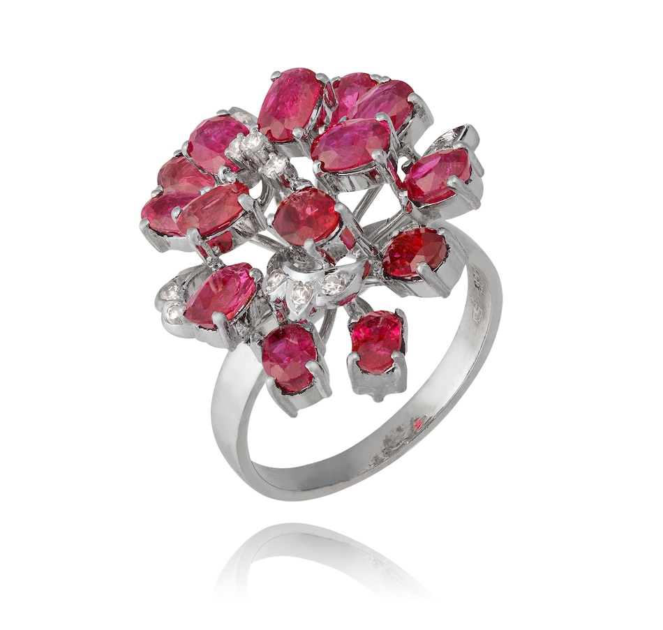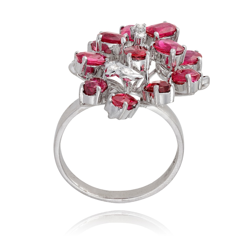 • 14kt White Gold Ruby and Diamond Cluster Ring
