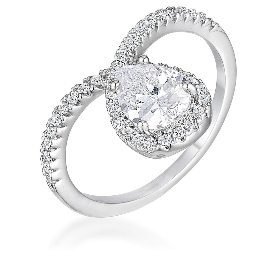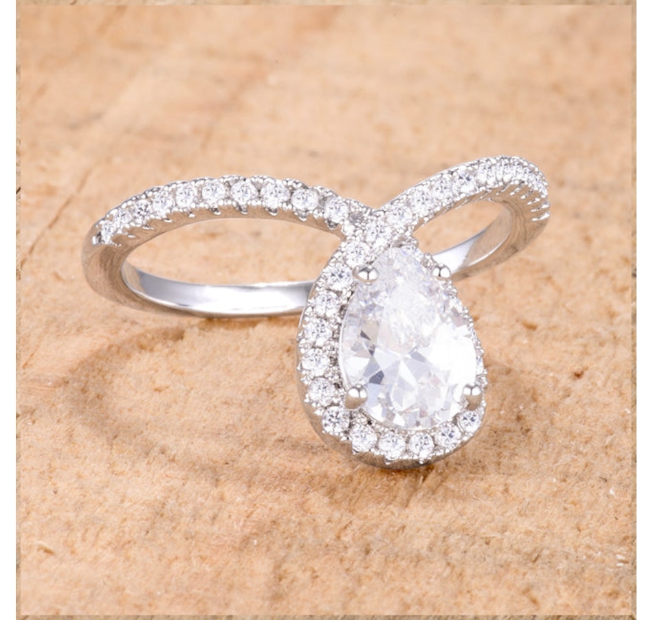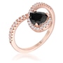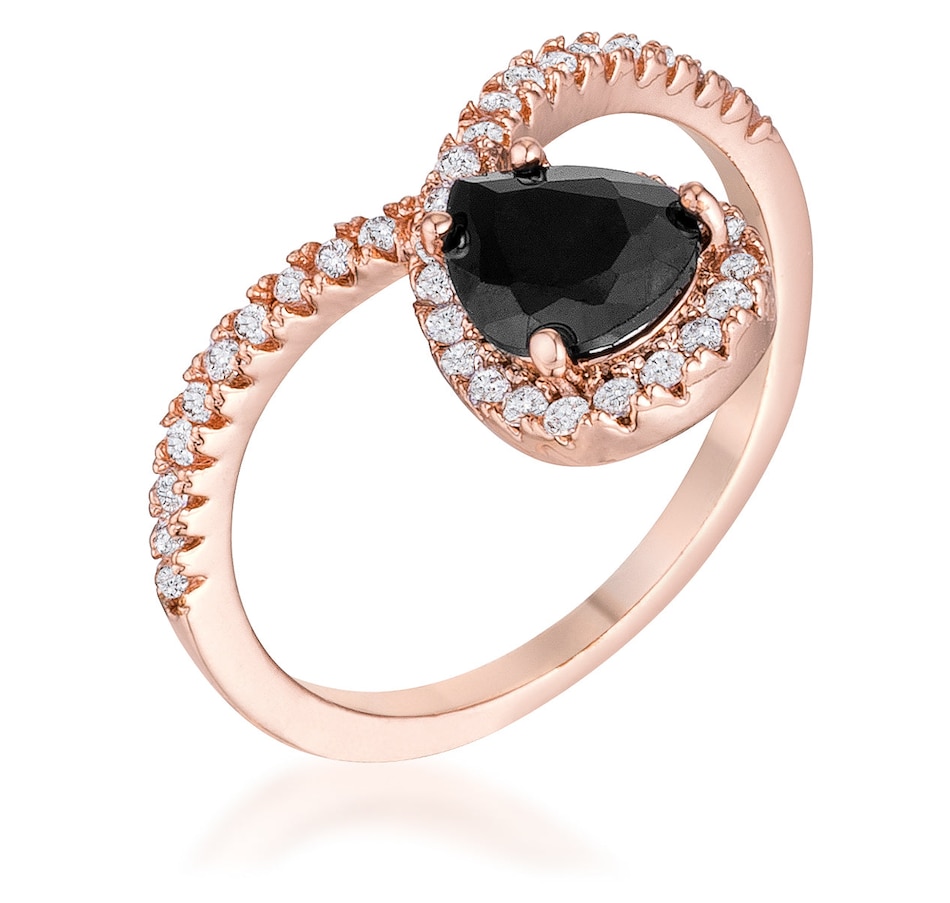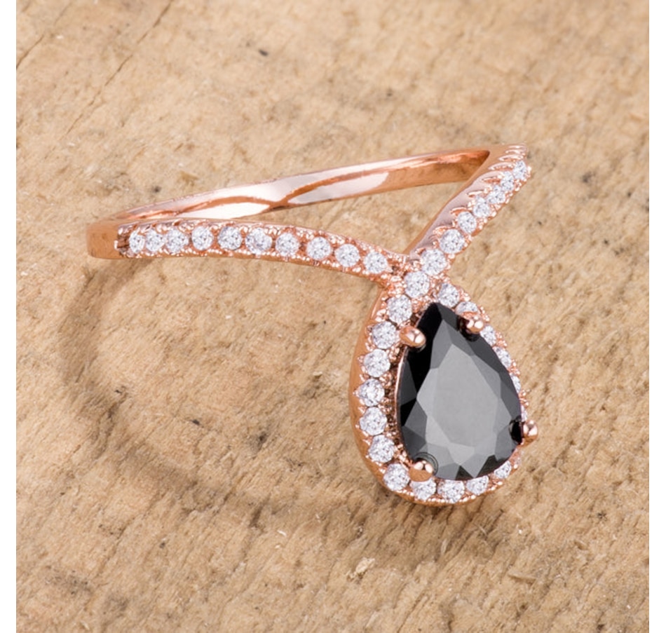 This ring is simply incible with a lovely pear-shaped and onyx colo cubic zirconia as the centerpiece and a number of round and cubic zirconia settings filled with dazzling beauty set in a band.